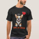 Das Shirt zeigt eine hübsche Abbildung eines französischen Bulldoggen in nah-up, niedlich und kartoonisch dargestellt. Der Hund trägt eine Baseballkappe mit einem gekreuzten Knochen