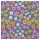 Das ist ein wunderschönes Retro-Boho-Blume-Muster in Rosa, Orange, Gelb und Weiß mit Ästen und grünen Blätter auf marinebasischem Hintergrund.