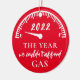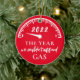 Dieses lustige Urlaubssornament enthält den Text "Das Jahr, in dem wir uns kein Gas leisten können" sowie das Jahr und die Gasspur auf rotem Hintergrund. Hintergrundfarbe und Jahr können durch Klicken auf "Design bearbeiten" geändert werden.