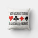 Auf diesem Kopfkissen mit den vier Kartenkarten-Anzügen und dem folgenden Sprichwort für alle, die mit dem verrückten Brückenspiel kämpfen: "Das Spiel der Brücke ist ein endloser Kampf", findet man eine "Wry Bridge / Duplikate Bridge-Einstellung".