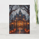 Die Tore sind offen für das spöttische, alte Herrenhaus. .. wagst du es, hineinzugehen? Der grinsende Jack der Laternen scheint freundlich genug, aber die Fledermäuse geben Ihnen vielleicht Pause. Herrlich geile Halloween-Karte!