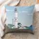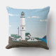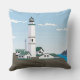 Dieser zeichn ist mit einem weißen, grünen und schwarzen Leuchtturm ausgestattet, der das Meer überragt. Der Himmel ist blau mit ein paar Wolken. Weiße Häuser mit grünen Dächern umgeben den Leuchtturm. Die Rückseite des Kissens ist die gleiche wie die Vorderseite. Dieses Design ist in verschiedenen Stilen und Größen erhältlich.