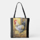 Ein wunderschöner, schwarz-weißer Hahn, der durch das Heu schlängelt, perfekt für die Landdekoration. Ölpastellfarbene und farbige Bleistiftkunst von Paxdomino.