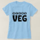 Logo Vegas Veg (Schwarzes) auf hellblauem T-Stück.