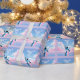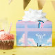 Feminine Silhouetten stehen unter einem Himmel wie Zuckerwatte mit einem weißen Transgender-Symbol darin wie das Bat-Signal, es hat ein Herz in der Mitte.