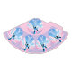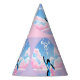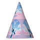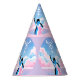 Feminine Silhouetten stehen unter einem Himmel wie Zuckerwatte mit einem weißen transgender Symbol darin wie das Bat-Signal, es hat ein Herz in der Mitte.
