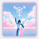 Feminine Silhouetten stehen unter einem Himmel wie Zuckerwatte mit einem weißen transgender Symbol darin wie das Bat-Signal, es hat ein Herz in der Mitte.