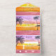 Küste, Strand, Sonnenuntergang, Palmen, Tropen, Ziel, Sommer alle in einer Einladung. Dreifach elegante, schicke, einzigartige, moderne 50. Hochzeitstag Einladungen. Passen Sie Ihre Daten an. Bestellen Sie rechtzeitig, um eine Enttäuschung zu vermeiden.