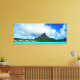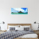 Panorama-Leinwand eines Überwasserresorts in der fantastischen türkisblauen Lagune von Bora Bora mit dem Otemanu im Hintergrund in Französisch-Polynesien bei Tahiti. Ein idealer Ort für Flitterwochen!