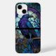 Ein spukiger, gruseliger Rabe, der in Buntglas dekoriert ist, dreht den Blick auf den Betrachter.