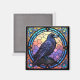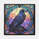 Ein spukiger, gruseliger Rabe, der in Buntglas dekoriert ist, dreht den Blick auf den Betrachter.