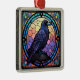 Ein spukiger, gruseliger Rabe, der in Buntglas dekoriert ist, dreht den Blick auf den Betrachter.