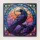 Ein spukiger, gruseliger Rabe, der in Buntglas dekoriert ist, dreht den Blick auf den Betrachter.