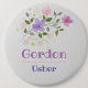 Einführung in den Usher - ein Button-Abzeichen mit dem Namen und einer Blumenillustrierung. Abzeichen zur Identifizierung von Hochzeiten.