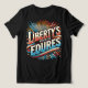 Das Design des T - Shirt "Das Versprechen der Freiheit" zeigt eine kraftvolle und zeitlose Darstellung der Freiheitsstatue, die vor dem Hintergrund der amerikanischen Fahne stehend hoch ist. Ihre Fackel ist abgewürfelt, symbolisiert Hoffnung und Freiheit, während subtile Lichtstrahlen von hinten ausgehen und die beständige Natur der Freiheit verstärken. Unterhalb des Bildes wird die Phrase "Die Bestrebungen der Freiheit" mutig in einem eleganten Schriftart geschrieben, der das unerschütterliche Bekenntnis zu Freiheit und Demokratie darstellt. Das Design gleicht Patriotismus mit einem modernen Flair aus und macht ihn zu einer auffälligen Aussage von Widerstandskraft und Einheit.