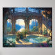 Ein verstecktes Konservatorium, gefüllt mit üppigem Grün und weichem, goldenem Licht, öffnet sich zu ruhigen Gewässern. Elegante Bögen und Glasscheiben umrahmen einen friedlichen Teich, umgeben von blühenden Pflanzen und sich windenden Reben, und schaffen einen ruhigen und einladenden Rückzugsort. Das Zusammenspiel von Licht, Wasser und Laub erweckt ein Gefühl der stillen Flucht, wo Natur und Architektur in einer harmonischen, traumhaften Kulisse verschmelzen.