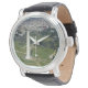 Uhr, Klassische Damenuhr mit schwarzen Lederarmband