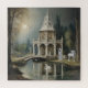 Ein weißes Gazebo steht in einem magischen Garten, als eine geheimnisvolle Frau in einem weißen Kleid einem weißen Einhorn und einem weißen Schwan nähert. Schönes, magisches, Fantasiepuzzle!