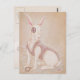Eine Postkarte mit dem Kunstwerk von Terra Bidlespacher mit dem Weißen Kaninchen aus der Alice im Wunderland.