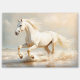 Fühlen Sie den Geist der Freiheit mit diesem atemberaubenden Kunstwerk eines weißen Pferdes Galopp entlang des Strandes. Die Eleganz des Set vor der Kulisse des Ozeans schafft eine atemberaubende Kulisse für Pferde- und Strandliebhaber.