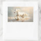 Das weiße Pferd läuft am Strand Rechteckiger Aufkleber