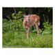 Ein junges Hirsch steigt aus dem Wald, um einen Biss zu essen.