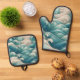 Das Zuhause Studio Ocean Wave Swirl Ofenhandschuh & Topflappen-Set