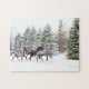 Drei Pferde, ein Grau, eine Bucht und ein Farbpferd, ein Trot und ein Kreuz durch eine verschneite Landschaft in diesem digitalen Kunstwerk, das in DAZ 3D vom Künstler Jayne Wilson entworfen wurde.