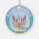 Schönes Hanukkah-Ornament mit neun Kerzenmenorah liest "Happy Hanukkah"! Sie können einfach das laufende Jahr zu diesem Sake Happy Hanukkah Keepake hinzufügen!
