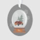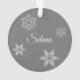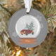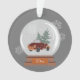 Niedliche Schneekugel mit rotem Auto und Weihnachtsbaum mit Datum auf der Vorderseite und einfache Schneeflocken und Namen auf der Rückseite.