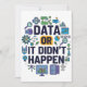 Feiern Sie den Power von Daten mit diesem lustigen und farbenfrohen Design mit der fetten Phrase "Data or it’t". Umgeben von Diagrammen, Grafiken, Codierungssymbolen und Forschungssymbolen ist es ein spielerischer und zugleich intelligenter Knoten in die Welt der Analytik, Wissenschaft und Technologie. Dieses Design ist perfekt für Datenwissenschaftler, Forscher, Programmierer und alle, die Beweise und Präzision schätzen. Es erfasst den geeky Charme eines Lebens, das von Statistik und Logik angetrieben wird, und macht es sowohl auffällig als auch bedeutsam. Ob im Büro, auf Konferenzen oder im Alltag, dieses Design erinnert jeden an die ultimative Regel: keine Daten, kein Beweis.