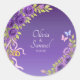 Datum + Braut, Bezeichnung der Lila Mauve-Blume Runder Aufkleber