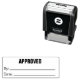 Diese selbstfarbige Briefmarke ist eine Textvorlage. Sie können den Text bearbeiten, um eine benutzerdefinierte Nachricht anzuzeigen. (Angezeigt: GENEHMIGTES Datum: By:) Neben dem Text für das Datum befinden sich Leerzeilen, sodass Sie diese Informationen nach dem Prägen auf Wunsch schreiben können.