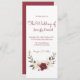 Die Hochzeitseinladung "Everlasting Liebe" bietet einen wahrhaft zeitlosen Ausdruck von Romantik. Dieses elegante Design präsentiert ein wunderschönes Aquarellbouquet ganz unten, das sorgfältig mit tiefen rote Rosen und unberührten weißen Calla-Lilien komponiert wurde, ergänzt durch die zarten staubigen Müller-Blätter. Die asymmetrische und formale Anordnung symbolisiert eine Liebe, die einzigartig und dauerhaft ist. Mit seiner klassischen und raffinierten Ästhetik ist diese Karte ein herzliches Versprechen einer Liebe, die ein Leben lang halten wird, und eine Einladung, den schönen Anfang Ihres Lebens zu erleben.