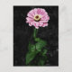 Ein Foto von einem rosa Zinnia, mit doppelter pinkfarbener Blume mit gelben Sternen, in einem Garten.