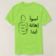 Up Daumen und ein Text auf Arabisch: schlechteste (أسوأ) Beleidigung (إهانة) überhaupt (أبدا) auf einem hellgrünen T - Shirt. Sie können diesen T - Shirt besonders anfertigen, um ihm Sie zu geben, einzigartigen Blick zu besitzen.