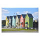 "Dauphin Island, Alabama, Houses" von Catherine Sherman. Diese sechs farbenfrohen, großen Häuser, von denen einige Vogelhäuser genannt haben, begrüßen die Besucher der Dauphin Island, Alabama. Die Häuser schließen sich an Docks an der Bayou Aloe im Golf von Mexiko an. Dauphin Island, am Golf von Mexiko, ist bekannt für seine weißen Sandstrände. Die Insel liegt am Eingang zur Mobile Bay, wo die Fort Gaines aus dem 19. Jahrhundert mit originellen Kanonen und einem Blick auf die Wohnräume und Arbeitsbereiche dieser historischen Befestigungsanlage aufwarten. Das Audubon Bird Sanctuary auf der Insel ist ganzjährig eine Zuflucht für wild lebende Tiere, einschließlich Alligatoren und Schildkröten in den Seen, und ist ein wichtiger Halt für Zugvögel. Das Estuarium des Dauphin Island Sea Labradors bietet Aquarien und eine lebendige Moorpromenade. Die Fähre bringt die Reisenden von einem Hafen am östlichen Ende der Insel Dauphin über die Mündung der Bucht von Mobile nach Fort Morgan an der Ostseite der Bucht. Pelican Point am östlichen Ende der Insel bietet einen exzellenten Blick auf den Golf von Mexiko und den Mobile Pass und ist eine großartige Lage, um Sonnenuntergänge und Sonnenaufgänge zu sehen. Delphine können im Wasser des Strandes gesehen werden, sowie viele Seevögel, wie Pelikane, Seeschwalben, Kormorane und Möwen.
