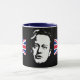 Unsere patriotische Tasse zeigt das Gesicht des britischen Premierministers David Cameron, der auf beiden Seiten von der Flagge Großbritanniens flankiert ist.
