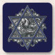 Eleganter Stern von David mit traditionell blau-weiß Hexagramm Symbol ergänzt durch einen verzierten barocken blühte von silberfarbenem Hintergrund. Art of Margaret Loftin Wititing.