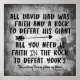 David und Rock Zitat mit Bibel Verse Posters. Zitat Typografie: "Alles was David hatte war Vertrauen und ein Fels, um seinen Riesen zu besiegen. Alles, was du brauchst, ist Vertrauen in den Felsen, um das eigene zu besiegen. " Gefolgt von Psalms Bibelverse, "Der Herr ist mein Gestein, meine Festung, mein Lieferant" Siehe mehr im Christlichen Quotes Shop. Link unten: