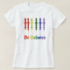 Grafische Darstellung von Kreissen, die in De Colores Regenbogentext schmelzen. Kreuze schmücken jeden der Stifte.