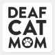 Der schwarze Text "Deaf Cat Mama" wird in drei Textzeilen in Großbuchstaben gestapelt. Das "o" in "Mama" hat eine weiße Pfote im Inneren.
