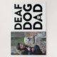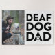 Der schwarze Text "Deaf Dog Vater" wird in drei Textzeilen in Großbuchstaben gestapelt. Das "a" in "Vater" hat innen eine weiße Pfote. Personalisieren Sie dieses Rätsel mit einem Foto von Ihnen mit Ihrem Gehörlosen Hund! Platzhalter-Foto nach Pixabay: https://www.pexels.com/photo/man-wearing-black-and-brown-fur-hoodie-jacket-and-blue-pants-holding-dog-leash-beside-white-short-coat-dog-159557/