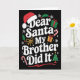 Dear Santa My Brother Did It Christmas Humor Karte