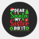 Dear Santa My Sister Did It Funny Christmas Kids S Runder Aufkleber