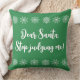 Dear Santa, Stop Judging Me pillow is a fun, silly and very festive addition to your Christmas decor. White text on a green background surrounded by snowflakes...This pillow let Santa Claus know that you've had enough. Its sure to bring a smile to all your holiday guests,