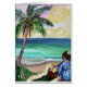 Hawaiische Dame reiht Plumerias auf dem Strand auf