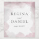 Ein elegantes Hochzeitsdesign mit einem hellrosa Aquarellrahmen auf weißem Hintergrund, entworfen von Shelby Allison.