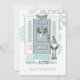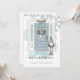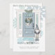 Neue Hallen Happy Holiday Weihnachtskarte und Neue Adresse Ankündigung in einem .. Ein winterthematisches Schneeflockdesign mit Haustür und niedlichem, langbeinigem Elf mit Kranz- und Eis-Skaten-Stiefeln - neue Zuhause-Adresse Frohe Festtage-Karte von Ricaso - fügen Sie Ihren eigenen Gruß, Ihre Adresse und ein Foto hinzu