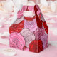 Eine sehr detaillierte Abbildung von Ebenen und Schichten voll geblümter Rose in Rot, Rosa und Lavendel.